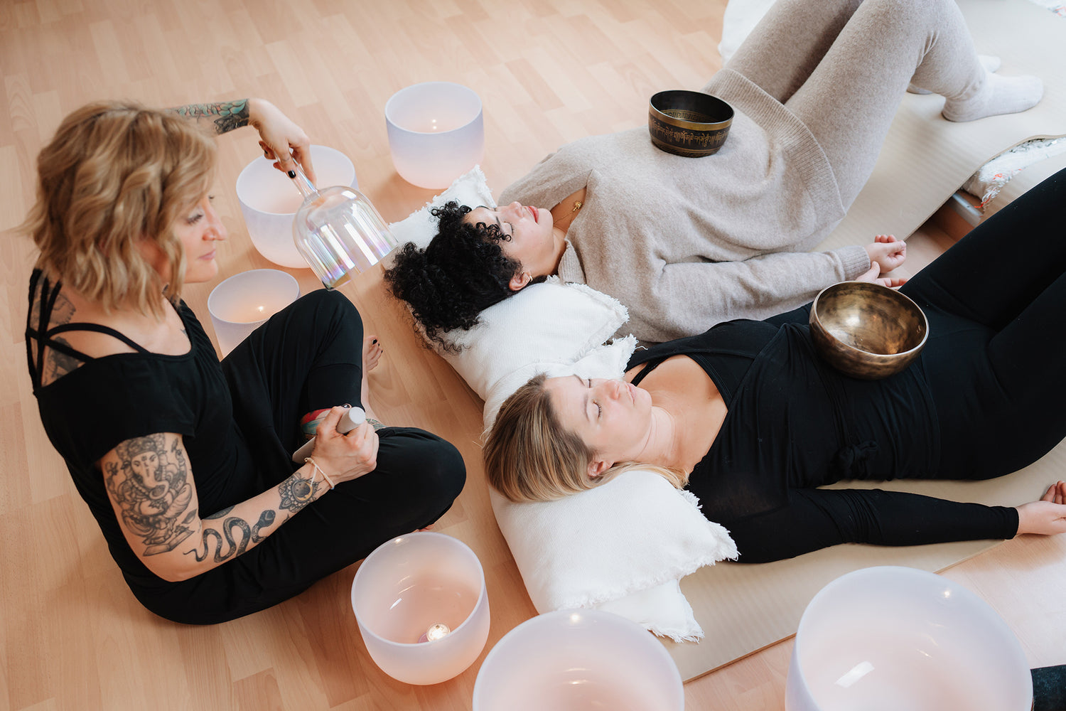 Während des Sound Bath lässt du dich von den Klängen umhüllen und gelangst so ganz leicht in einen entspannten Zustand.